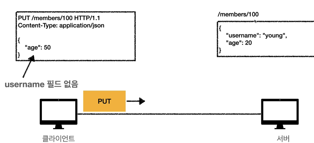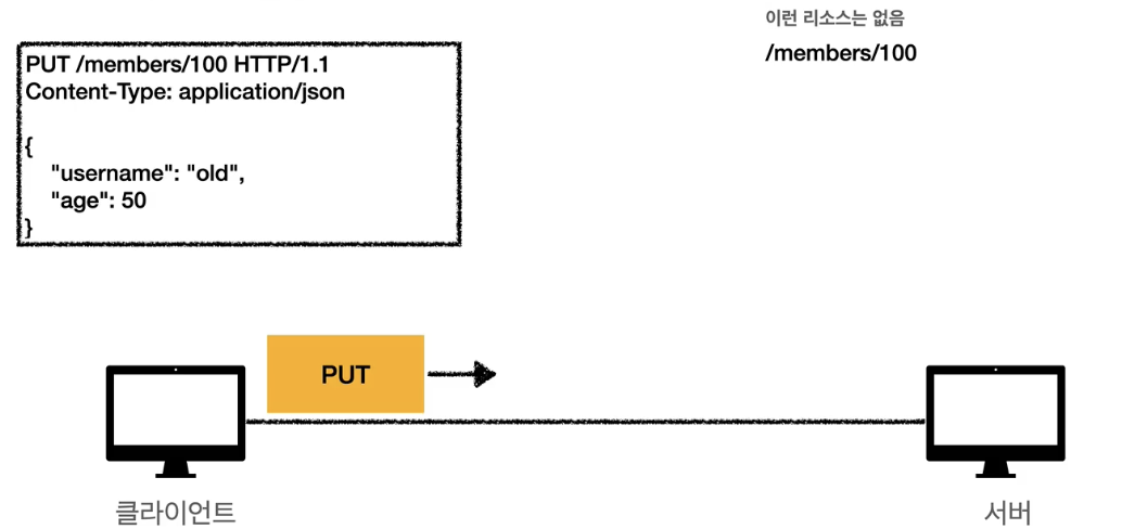 POST와 차이점 : 클라이언트가 리소스를 식별함 (리소스 위치 알고 URI 지정)