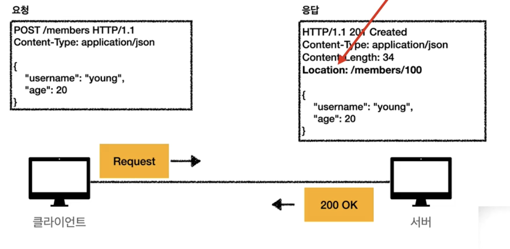 생성된 리소스는 응답의Location 헤더 필드로 식별