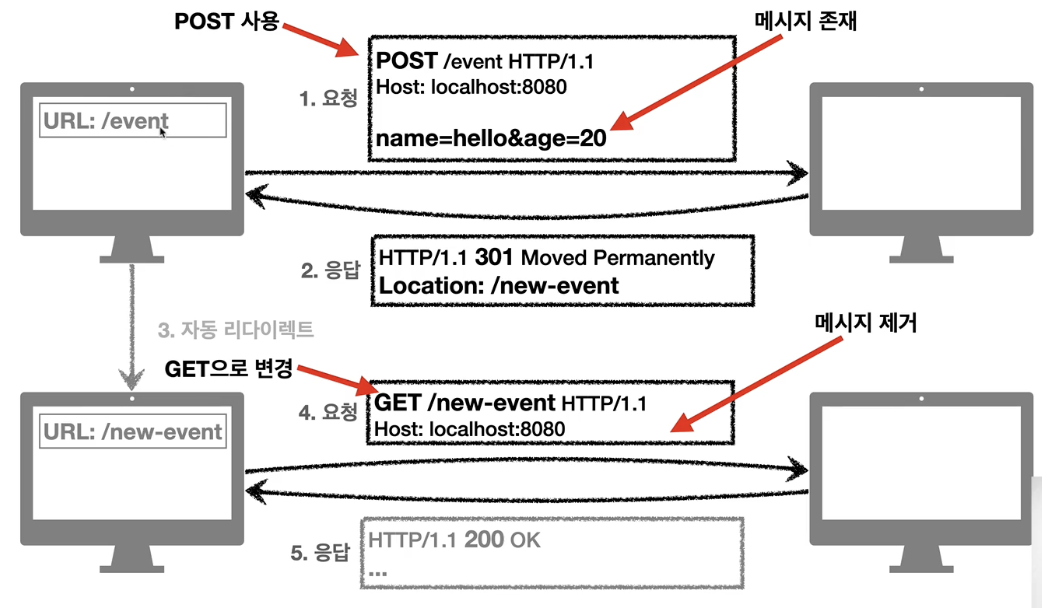 PRG 이후 리다이렉트 하면 URL이 이미 POST ➡️ GET으로 리다이렉트됨