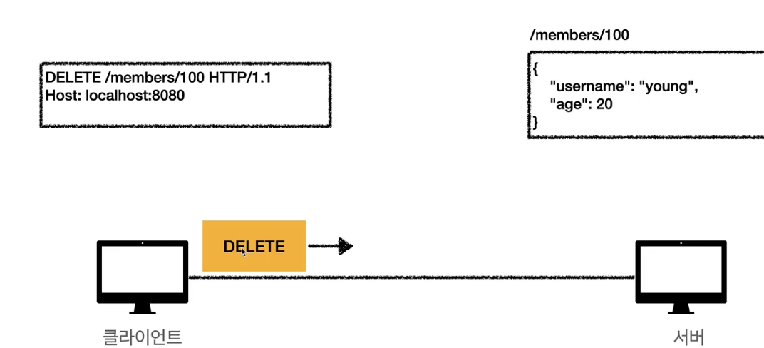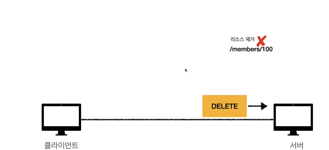 회원삭제 / delete-member (X) ➡ 리소스 : 회원 / members / {id}