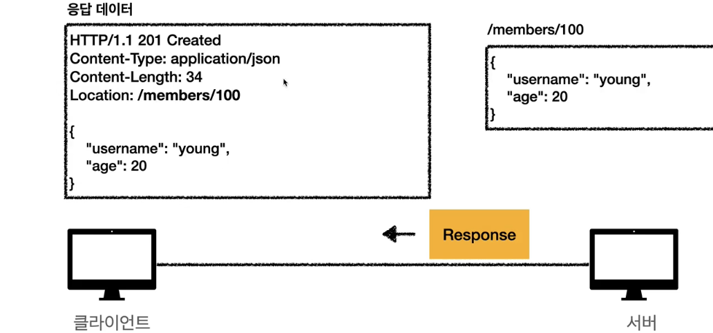 서버 응답 데이터 전송 (Location: 자원이 신규 생성된 경로)