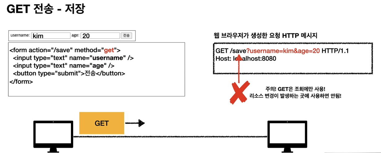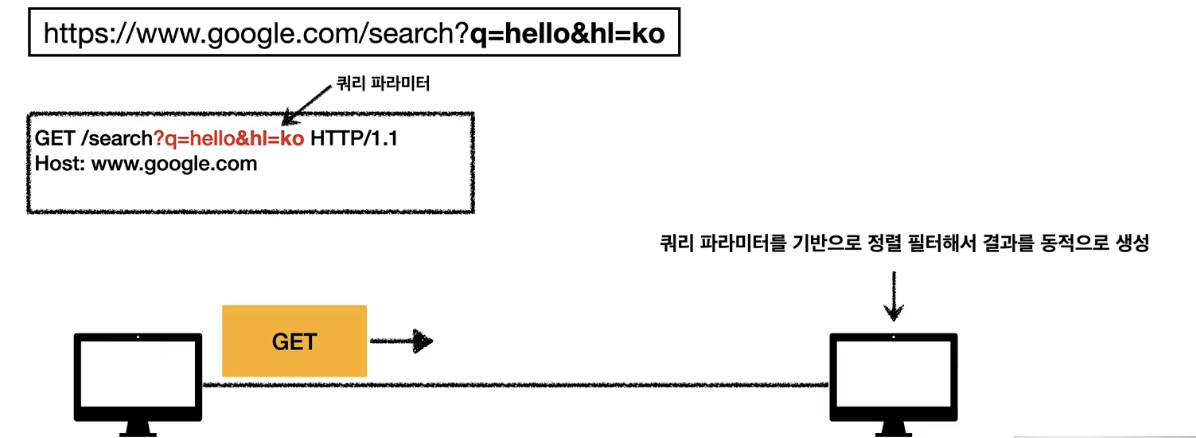 서버에 전달하려는 데이터를query(쿼리 파라미터/스트링)통해 전달