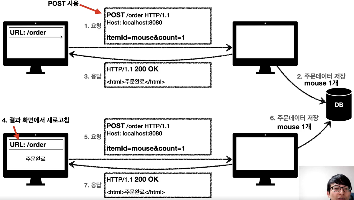 🗒️ 예시 : PRG 사용하지 않으면 웹브라우저 새로고침시 POST 재요청